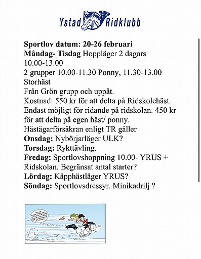 Information berörande ridhus!